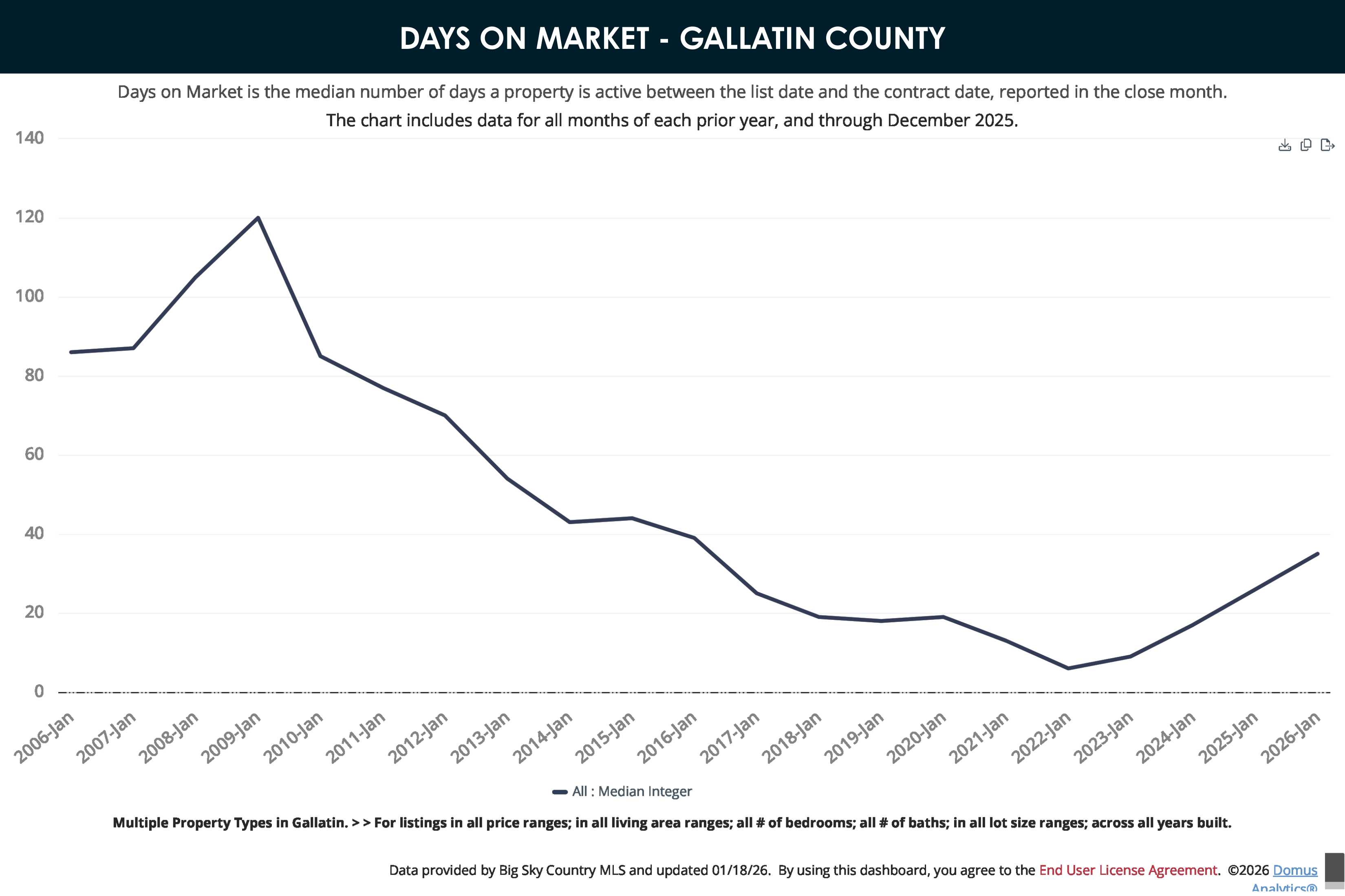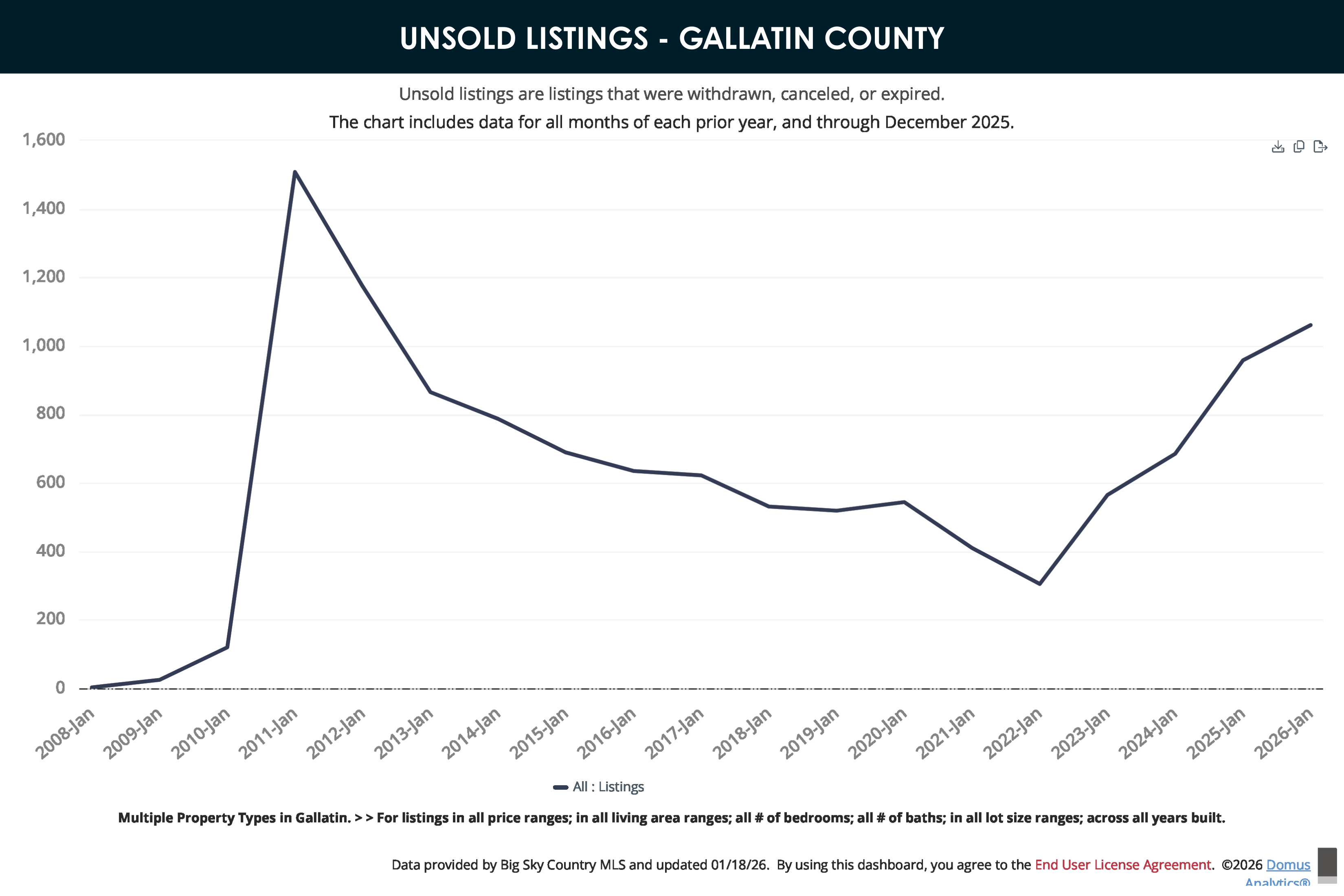 There’s no denying that the market changed once mortgage rates increased and the pandemic boom faded. There were 1,625 closed sales in Gallatin County in 2025. Compare that to the peak in 2021 when we hit 2,798 sales, and sure, it looks like a drop.