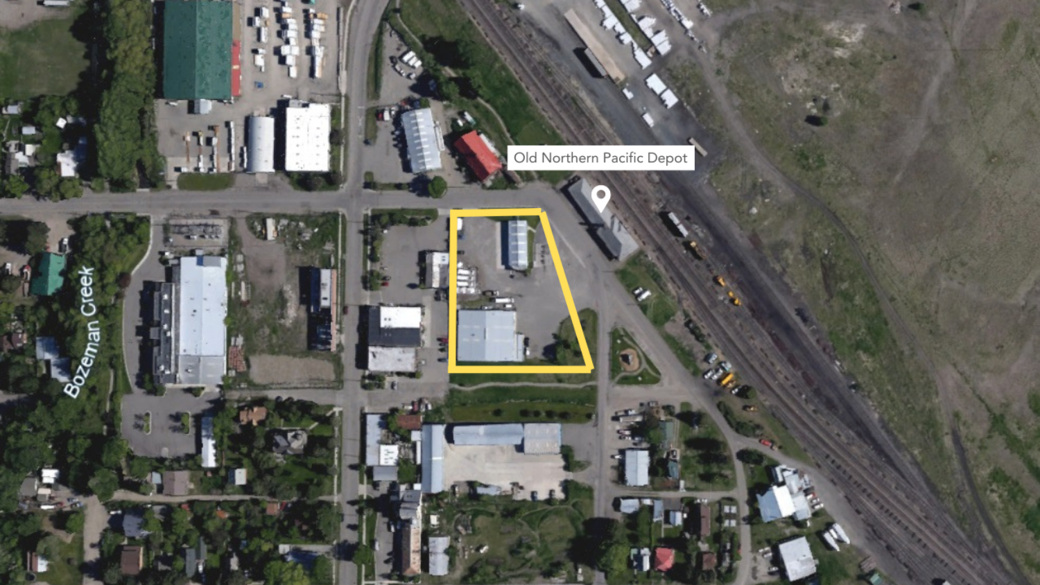Bozeman Yards is planned for northeast Bozeman, directly across from the historic Northern Pacific Depot. The property lies within the Neighborhood Conservation Overlay District (but not the Historic District), and currently includes a warehouse that would be demolished. The existing structure is not eligible as a historic property.