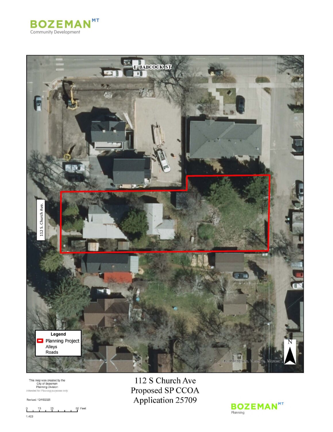 The location of the proposed building is at the boundary between Bozeman’s high-density B-3 district and the R-2 residential neighborhood to the south.