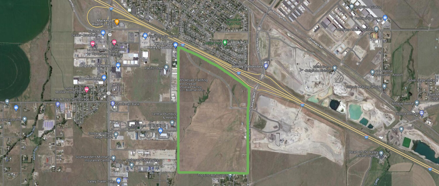 At over 250- acres this is the largest development in the area. It will be mixed-use and is located south of I-90 and the airport. It is a master-planned community that will be on the western edge of the Triangle Community plan between Belgrade and Bozeman. Plans for this development include retail, residential, commercial, light industrial, a hotel, and a restaurant. Phase I final plat has been approved and there is availability for commercial lots in both Phase I and II.