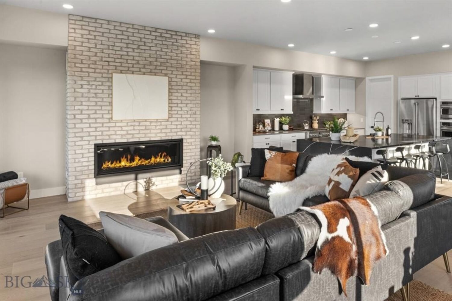 Blending modern living with Montana's relaxed lifestyle, this Gran Cielo home offers refined single-level living with soaring ceilings and thoughtfully crafted details throughout. Natural light pours into open, welcoming spaces finished with high-end materials that elevate everyday living. At its heart, a private internal courtyard creates a seamless indoor-outdoor flow--over 600 square feet of serene, sheltered space already prepared for a future outdoor kitchen and hot tub.