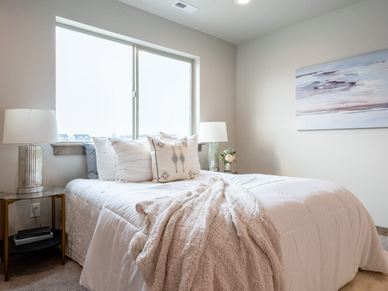 Modern luxury is what comes to mind when you walk into this Black Bull stunner! An abundance of windows allows natural light to come in throughout the open floor plan. The vaulted ceilings in the main living area are accented with beautiful wood beams. The primary suite features a huge bathroom with double sinks, a gorgeous tub, and a walk-in closet. There are several outside spaces including an upper-level balcony with mountain views.